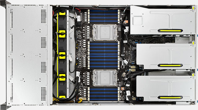 2U dual-socket server powered by 3rd Gen Intel Xeon Scalable processors that supports up to 32 DIMMs, four dual-slot GPUs, eight NVMe, nine PCIe 4.0 slots, OCP 3.0, dual M.2 and ASUS ASMB10-iKVM.