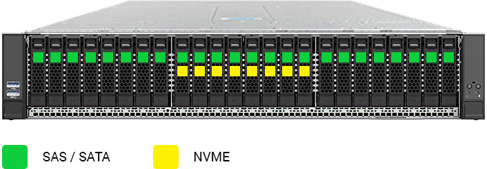 • (24) 2.5” hot-swap drive bays with drive mounting rails and blanks