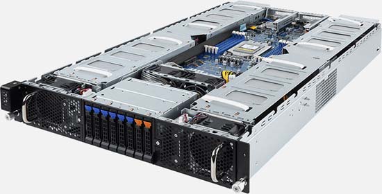 Supports up to 8x double slot GPU cards, 2x 10Gb/s SFP+ LAN ports (Mellanox® ConnectX-4 Lx controller), 6x 2.5" SATA and 2x 2.5 NVMe/SATA hot-swappable HDD/SSD bays