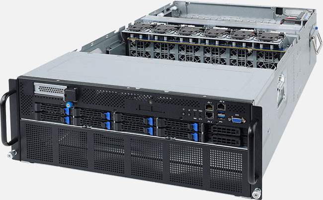 Up to 8x PCIe Gen4 GPGPU cards, 2x 1Gb/s BASE-T LAN ports (Intel® I350-AM2), 1x dedicated management port, redundant power option.