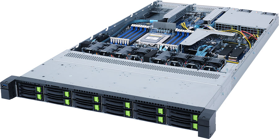 Single AMD EPYC™ 7003 Server System, Dual 1Gb/s LAN (Intel® I350-AM2), Redundant 800W Power Supply. 12x 2.5" NVMe hot swappable drive bays.