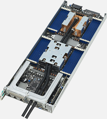 Quad Node, Dual AMD EPYC 9004 Series Processors, Dual 2600W redundant power supply, 8x 2.5" NVMe/SATA/SAS hot-swappable drive bays (2x Per Node).