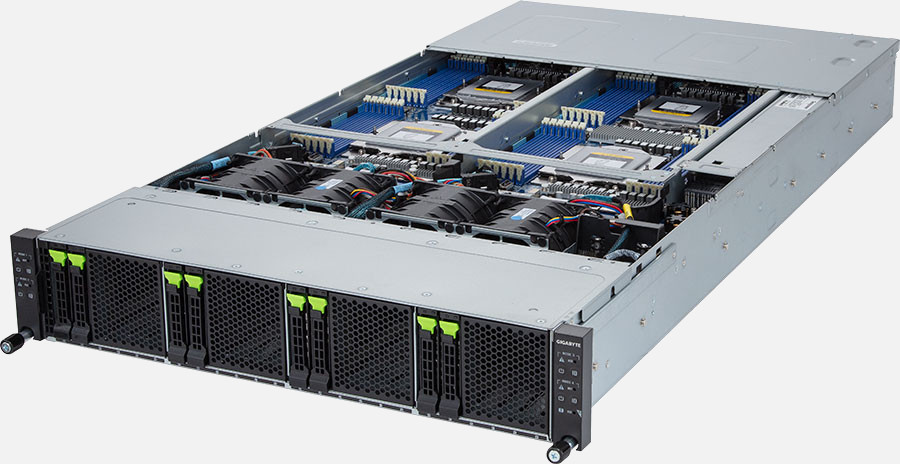 The CyberServe EPYC EP2 208-8NVMe Quad Node G5 boasts high density storage and ultimate energy efficiency, catering for up to 8x High-Performance 2.5" SSD or Hard Drives