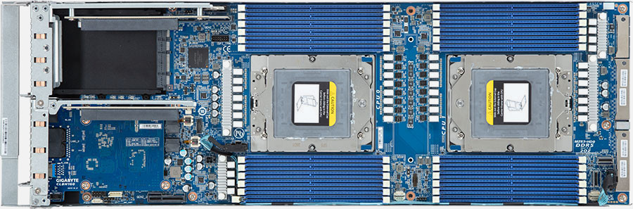 Ready for the most demanding enterprise applications, the Broadberry CyberServe EPYC EP2 208-8NVMe Quad Node G5 can be configured with up to 96 DDR5 ECC Registered memory modules.