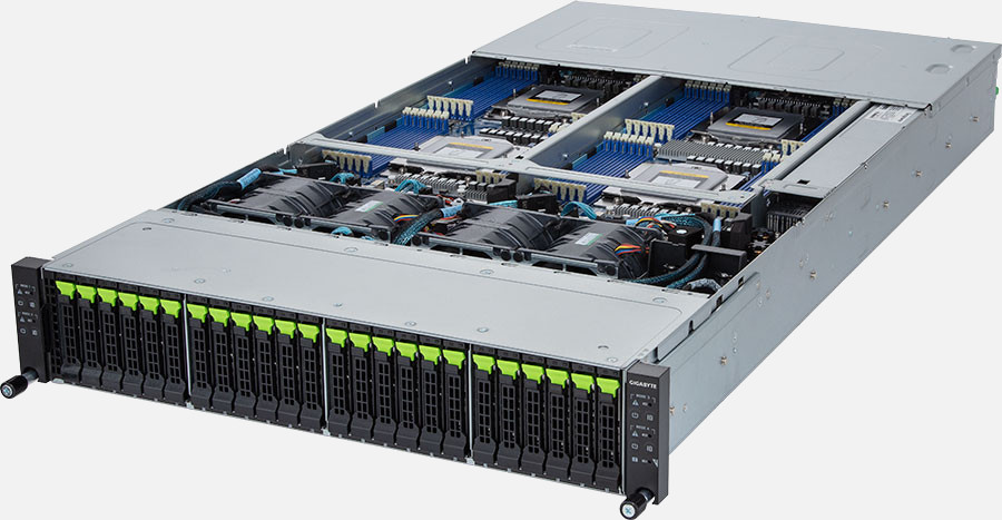 The CyberServe EPYC EP2 224-NVMe Quad Node G5 boasts high density storage and ultimate energy efficiency, catering for up to 24x High-Performance 2.5" SSD or Hard Drives