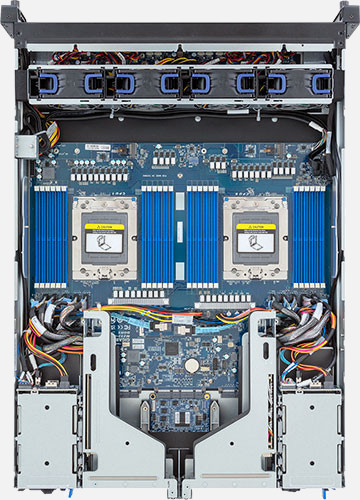 Dual AMD EPYC 9004 series processors, 6x FHHL PCIe Gen5 x16 and x8 slots, 2x 1Gb/s LAN ports (Intel® I350-AM2), 1600W Redundant Power Supply, 4x 2.5" SATA/SAS hot-swappable drive bays.