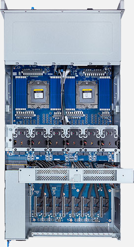 Dual AMD EPYC 9004 series processors, Supports up to 8x double slot GPU cards, 2x 10Gb/s BASE-T LAN ports (Intel® X710-AT2).