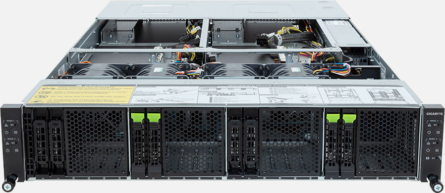 The Gigabyte H233-Z80 (6NH233Z80DR000AAW1) can be configured with hot-swap drives, allowing you to remove and replace the drives whilst the system is running with no interruption.