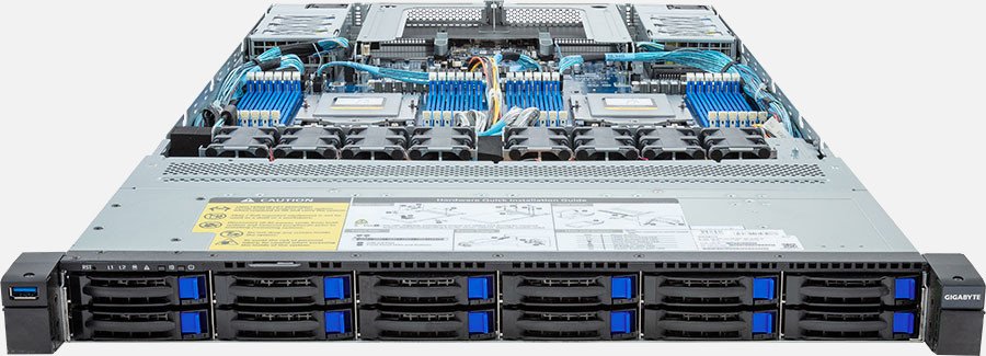 The Gigabyte R183-Z92 (6NR183Z92DR000AAD3) can be configured with hot-swap drives, allowing you to remove and replace the drives whilst the system is running with no interruption.
