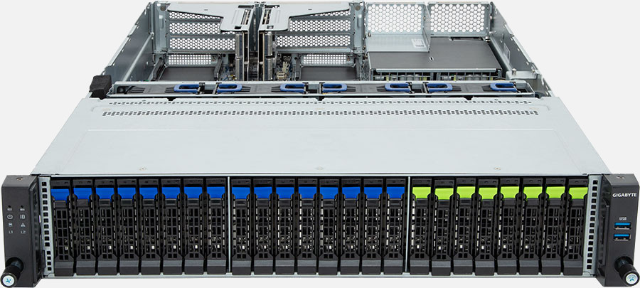 The Gigabyte R263-Z32 (6NR263Z32DR000AAC1) can be configured with hot-swap drives, allowing you to remove and replace the drives whilst the system is running with no interruption.