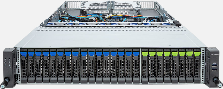 The Gigabyte R283-Z96 (6NR283Z96DR000AAE3) can be configured with hot-swap drives, allowing you to remove and replace the drives whilst the system is running with no interruption.