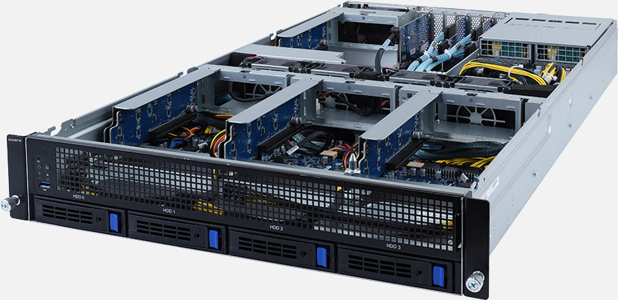 Single Ampere® Altra series processors, 4x FHFL PCIe Gen4 x16 slots for GPUs , 2x 1Gb/s LAN ports (Intel® I350-AM2), 1600W redundant power supply, 4x 3.5"/2.5" SATA hot-swappable drive bays.