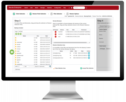 The BWeb backup administration system delivers a multitude of wizards which provide support when you are creating new jobs. Through providing a chronological series of required actions that will guide the administrator, jobs can be performed in seconds. BWeb offers:
