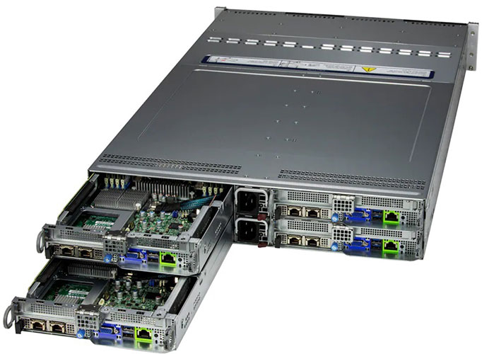 This 2U Twin delivers an innovative architecture where devices can be hot-swapped to allow for easier maintenance, to reduce/eliminate down time and to save space and energy.