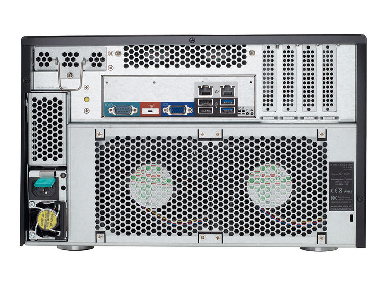 The CyberStore beats standard NAS appliances hands down for expansion options: all four of the motherboard's low-profile PCI Express slots are up for grabs. There are also three USB 3 ports with one at the front, another pair of USB 2 ports and a pair of Gigabit Ethernet connections at the rear.