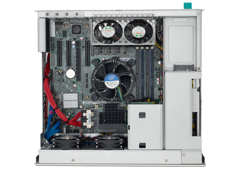 The CyberStore uses an industry-standard Intel Server Board S1200V3RPL located above the drive bays. The price includes a speedy 3.3GHz E3-1230 v3 CPU partnered by two 8GB DDR3 modules; fill the remaining pair of DIMM slots and you can reach the maximum 32GB without wasting any memory sticks.