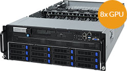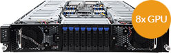 Supports up to 8x double slot GPU cards, 2x 10Gb/s BASE-T LAN ports, redundant power option, 8x 2.5" hot-swappable HDD/SSD bays