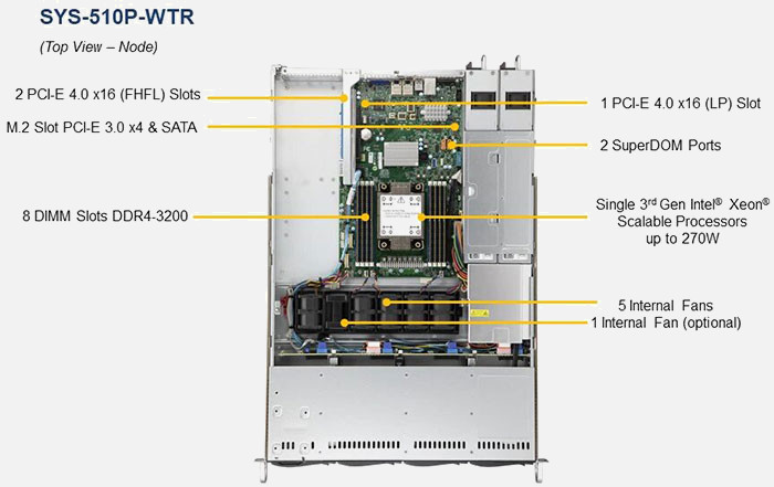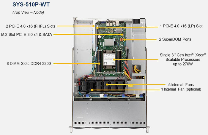 • Single Socket P+ (LGA-4189) 3rd Gen Intel® Xeon® Scalable processors. Up to 270W TDP.