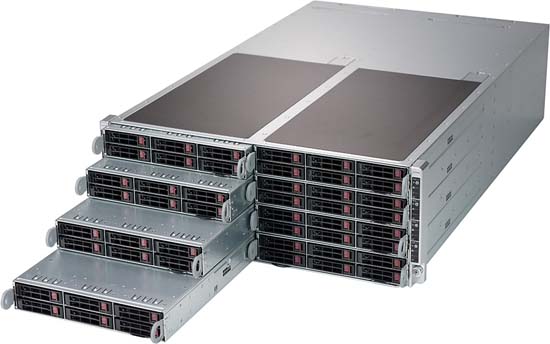 This server is a 4U FatTwin, a flexible to configure, easy to maintain, cost effective and reliable server that is capable of superb performance with low power consumption.