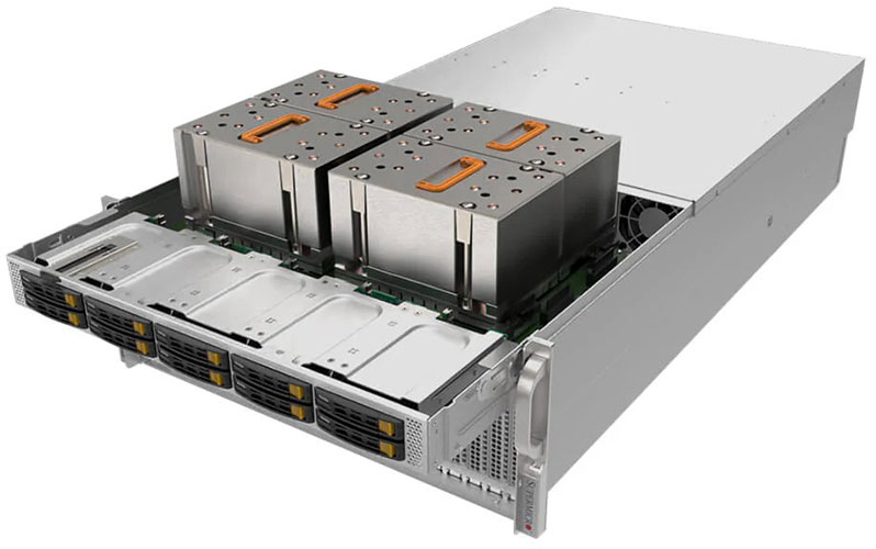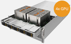 Ideal for High Performance Computing, AI and Deep Learning. Supports 4x AMD Instinct™ MI250 OAM Accelerator 4-GPU, 8x PCI-E 4.0 x16 LP slots. Redundant 3000W Titanium Power Supply, 10x 2.5" hot-swap NVMe/SATA drive bays