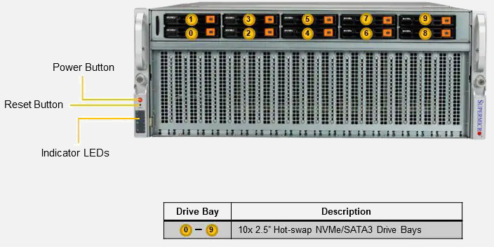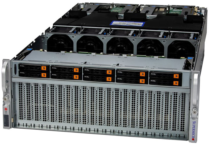 Ideal for High Performance Computing, AI and Deep Learning. Supports 4x NVIDIA SXM: HGX A100 4-GPU, 6x PCI-E 5.0 x16 LP slots. Redundant 3000W Titanium Power Supply, 10x 2.5" hot-swap NVMe/SATA drive bays