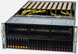 Ideal for HPC, AI, Deep Learning, cloud gaming, VDI, rendering and animation. 8x PCI-E 5.0 x16 slots. Redundant 2700W Titanium Power Supply, 24x 2.5" hot-swap NVMe/SATA drive bays