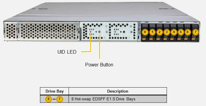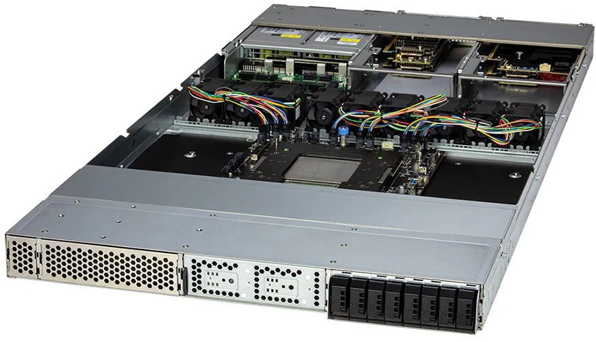 Single NVIDIA 72-core CPUs on a Grace™ CPU Superchip Series processor, Up to 480GB LPDDR5X onboard memory, 2000W Redundant PSU, Up to 8x Hot-swap E1.S drives & 2x M.2 NVMe drives.