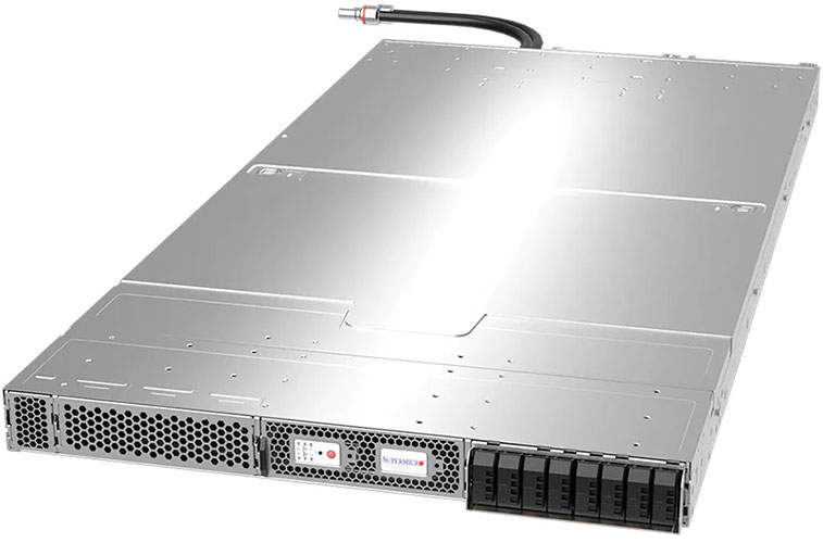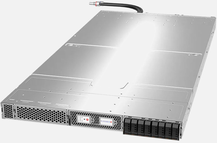 Liquid Cooled, Single NVIDIA 72-core CPUs on a Grace™ CPU Superchip Series processor, Up to 480GB LPDDR5X onboard memory, 2000W Redundant PSU, Up to 8x Hot-swap E1.S drives & 2x M.2 NVMe drives.
