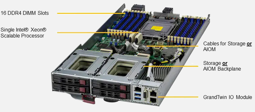The Supermicro GrandTwin SuperServer 210GT-HNC8F | SYS-210GT-HNC8F features hot-swap hard drives, giving you more flexibility and allowing you to remove drives without having to shut down the system.
