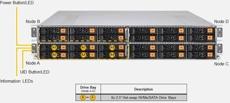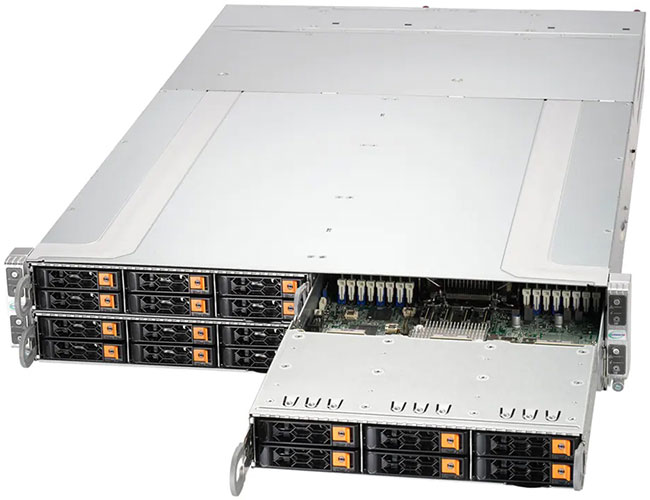 Ideal for HPC, MEC, Cloud Gaming, Multi-purpose CDN, High-availability Cache Cluster and EDA. Quad Node 2U Form Factor. Redundant 2200W Power Supply, 6x 2.5" hot-swap NVMe/SATA drive bays (Per Node)