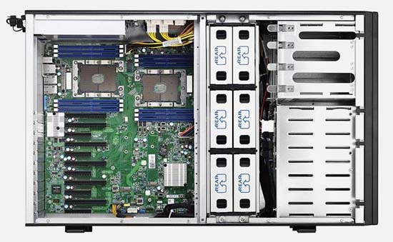 This server supports SATA drives, which are very cost-effective and adept at dealing with mass storage.