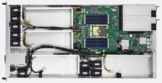 This server supports SATA drives, which are very cost-effective and adept at dealing with mass storage.