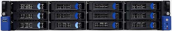 This server supports SATA drives, which are very cost-effective and adept at dealing with mass storage.