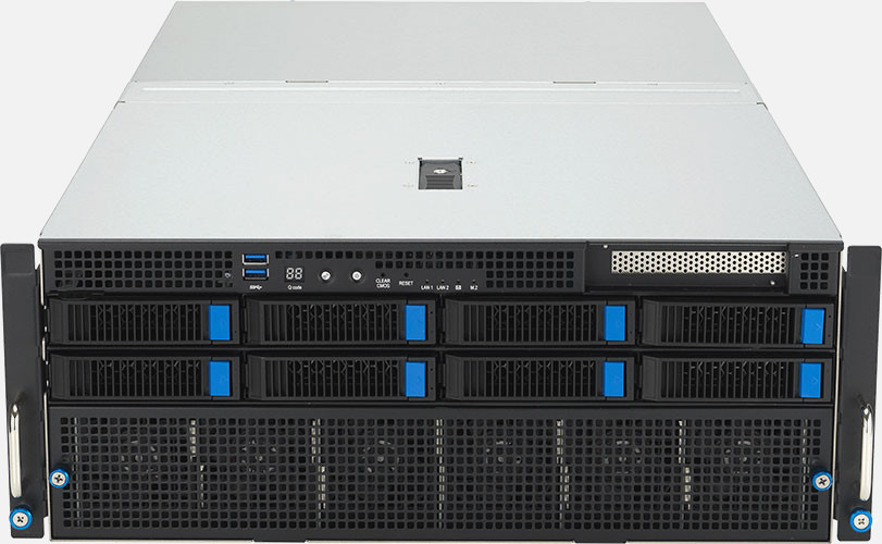 Dual 4th Gen Intel Xeon Scalable Processors, Supports up to 8x double slot GPU cards, Quad 2600W redundant power supply, 8x 3.5"/2.5" NVMe/SATA/SAS hot-swappable drive bays.