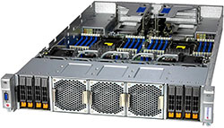 Dual 4th Gen Intel Xeon Scalable processor, Ideal for High Performance Computing (HPC), AI, Deep Learning and scientific research. Supports up to 4x NVIDIA A100 GPUs. Redundant 2200W Titanium Power Supply, 8x 2.5" hot-swap NVMe/SATA drive bays.