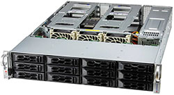 Ideal for High-Performance File System, Diskless HPC Cluster, Big Data Analytics and AI. Dual Node 2U Form Factor. Redundant 2200W Power Supply, 12x 2.5" hot-swap NVMe/SATA drive bays (Per Node)