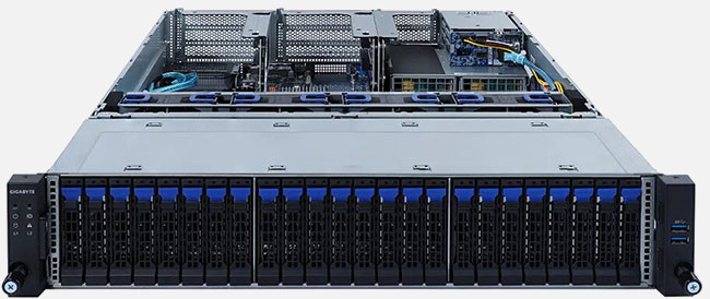 The Gigabyte R282-2O0 (6NR2822O0MR-00) can be configured with hot-swap drives, allowing you to remove and replace the drives whilst the system is running with no interruption.