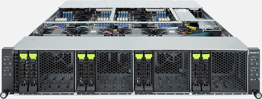 The Gigabyte H263-S67 (6NH263S67DR000ABW1) can be configured with hot-swap drives, allowing you to remove and replace the drives whilst the system is running with no interruption.