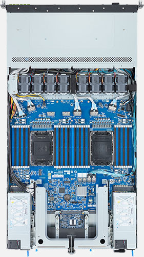 Dual 4th/5th Gen Intel Xeon Scalable Processors, 2x FHHL PCIe Gen5 x16 slot, 2x 1Gb/s LAN ports (Intel® I350-AM2), 8x NVMe/SATA/SAS & 6x E1.S hot-swappable drive bays.