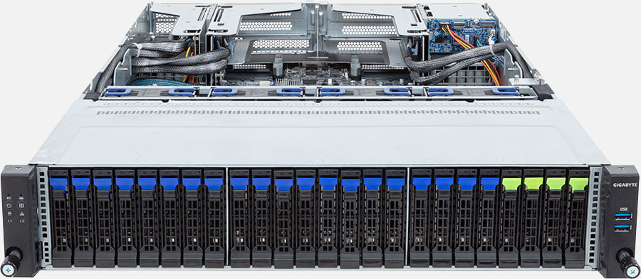 The Gigabyte R283-S92 (6NR283S92DR000AAJ4) can be configured with hot-swap drives, allowing you to remove and replace the drives whilst the system is running with no interruption.