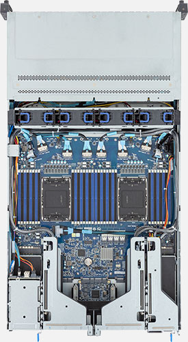 Dual 4th Gen Intel Xeon Scalable Processors, 4x FHHL PCIe Gen5 x16 Slots, 2x 1Gb/s LAN ports (Intel® I350-AM2), 16x 2.5" SATA/SAS, 8x 2.5" NVMe/SATA/SAS hot-swappable drive bays.