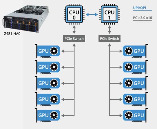 Up to 10x NVIDIA Tesla® V100 PCIe GPGPU cards, 2x 10Gb/s BASE-T LAN ports (Intel® X550-AT2), 2x GbE LAN ports (Intel® I350-AM2), redundant power option