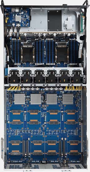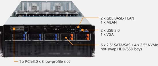 Up to 8x NVIDIA Tesla® V100 SXM2 modules, up to 300GB/s GPU interconnection by NVIDIA® NVLINK™ technology, 5x low profile PCIe Gen3 expansion slots.