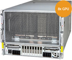 7U, Dual 4th Gen Intel Xeon Scalable Processors, Supports up to 8x NVIDIA HGX H100/H200 GPU cards, 3+3 3000W redundant power supply, 8x 2.5" NVMe & 2x 2.5" NVMe/SATA/SAS hot-swappable drive bays.