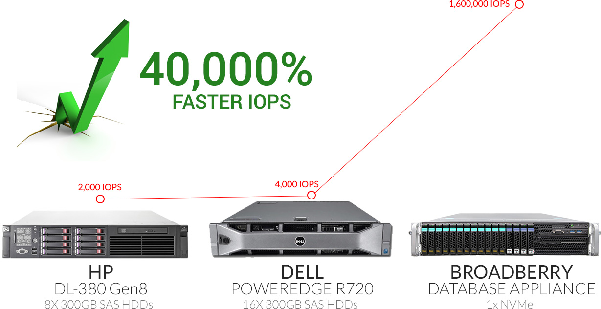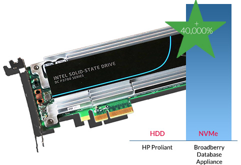Configured with ultra high-performance Intel NVMe drives, the Broadberry Database appliance can achieve far superior performance results than using other storage technologies.