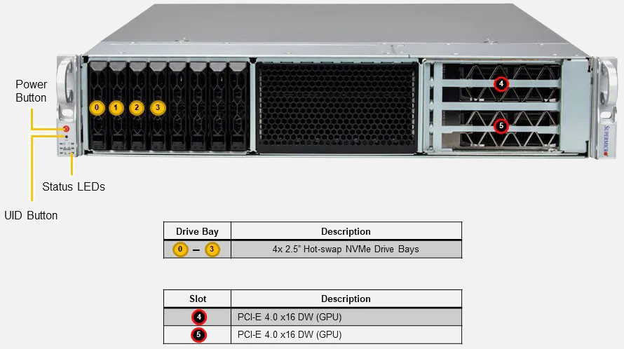 Optimised for High Performance Computing, Cloud Gaming, Dense-VDI, AI Inference / Training and Immersive Media. Ampere® Altra® Processor. Dual Redundant 1600W power supply. 8x 2.5" hot-swap NVMe drive bays
