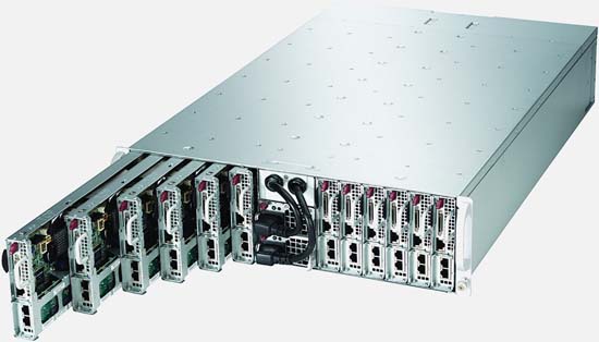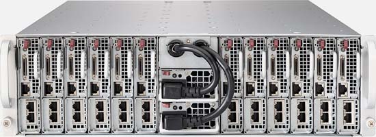 Built as a Microcloud server, the Supermicro MicroCloud modular server system delivers 12 modular server nodes conveniently integrated into a 29" deep chassis.