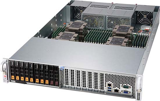 The Broadberry 2049P-TN8R is a quad-socket server solution powered by Intel Xeon Scalable processors, has a huge RAM capacity of 6TB and features 8x 2.5"hotswap U.2 NVMe drives bays and 2x 2.5" SATA drives.