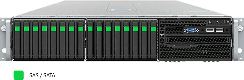 This system can be configured with SATA drives for cost-effective 12gb/s storage.
