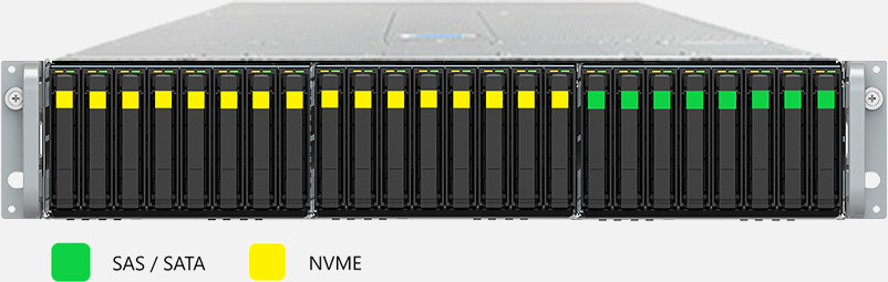 This system can be configured with SATA drives for cost-effective 12gb/s storage.